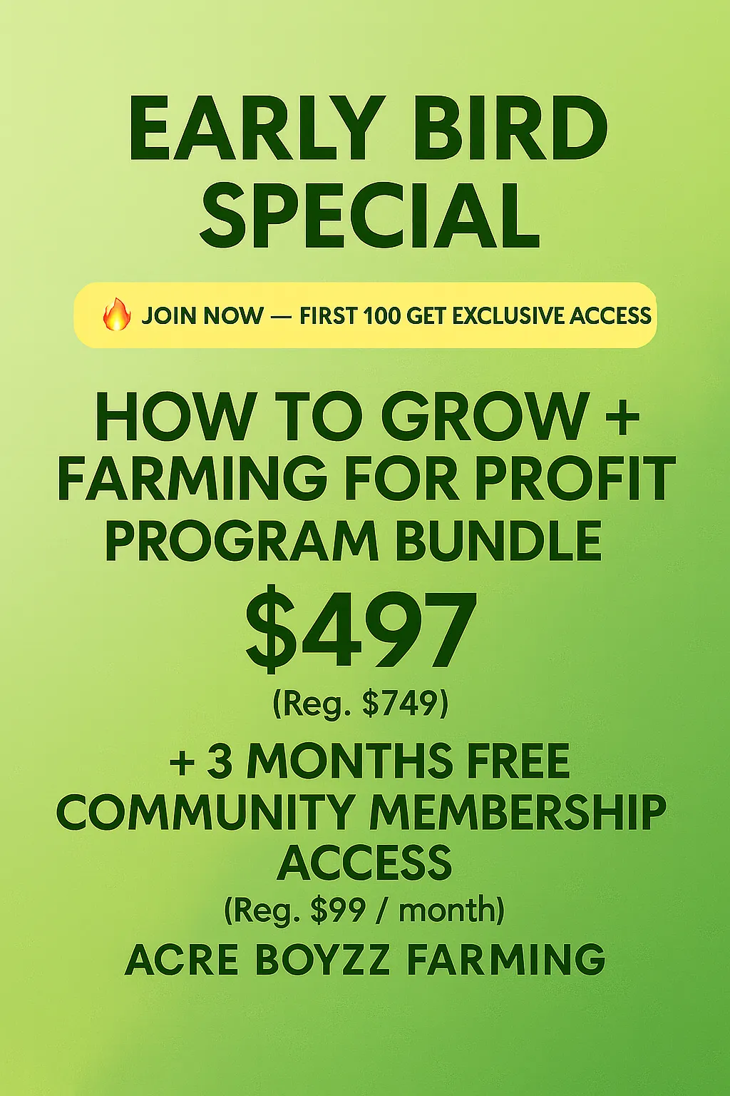 We are launching our online course soon! Secure your spot and get early access to Acre Boyzz Farming exclusive content.